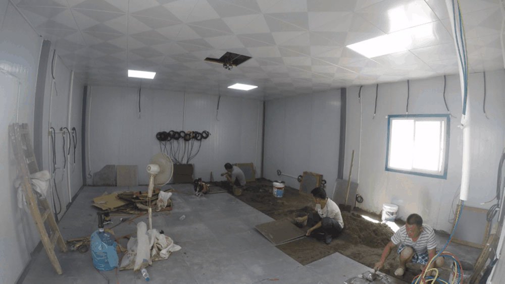 水泥沙找平后開(kāi)始鋪磚工作,至9月7日完成