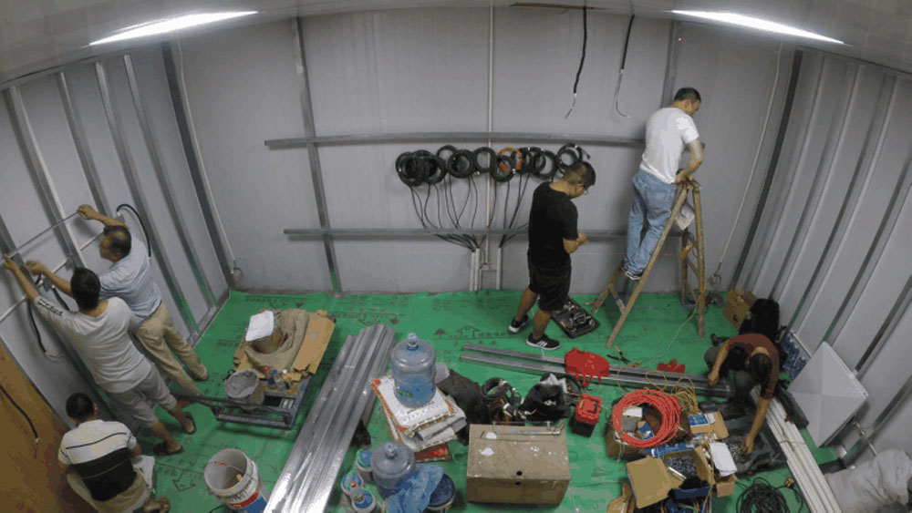 接下來(lái)的兩日里,施工工人接連完成VR展示區(qū)高精有機(jī)玻璃安裝及構(gòu)建燈箱安裝