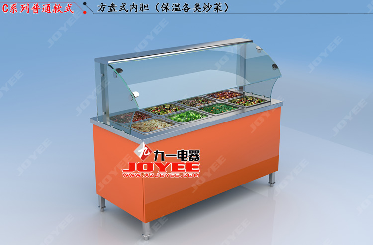 上部弧形鋼化玻璃罩,前開口式玻璃罩方便傳遞菜品,內(nèi)置LED照明展示效果更佳,全304不銹鋼柜體,厚度0.8mm板材鍛造堅固耐用!