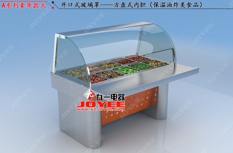 前部不銹鋼平臺,前開口式玻璃罩方便傳遞菜品,內(nèi)置LED照明展示效果更佳,全304不銹鋼柜體,厚度1.0mm板材鍛造堅固耐用!