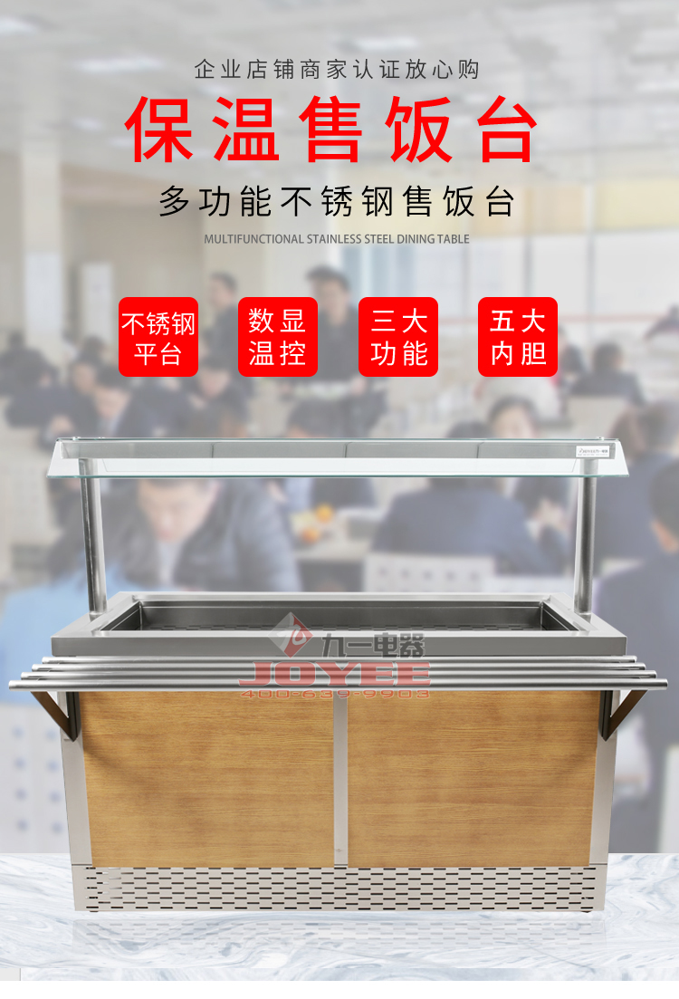 仿木紋裝飾板高端上檔次,前部圓管式平臺(tái)簡(jiǎn)潔大方,T型敞開(kāi)式玻璃罩適合自助餐,內(nèi)置LED射燈展示效果更佳,全304不銹鋼柜體,厚度1.2mm板材鍛造堅(jiān)固耐用!