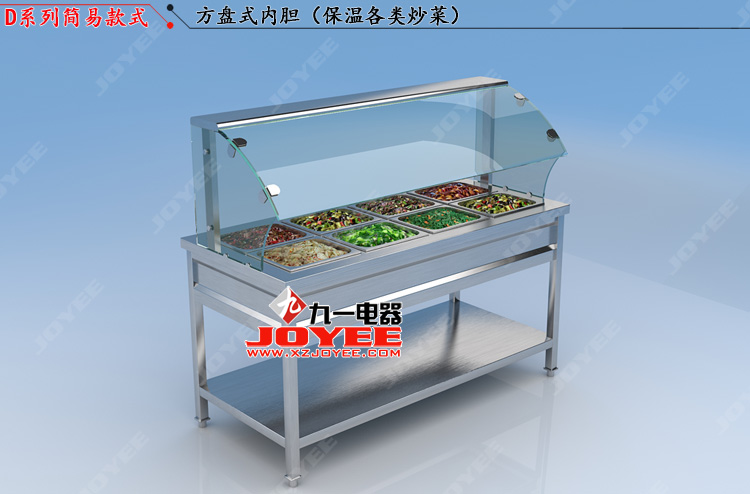上部弧形鋼化玻璃罩,前開口式玻璃罩方便傳遞菜品,內(nèi)置LED照明展示效果更佳,全304不銹鋼柜體,厚度0.8mm板材鍛造堅(jiān)固耐用!