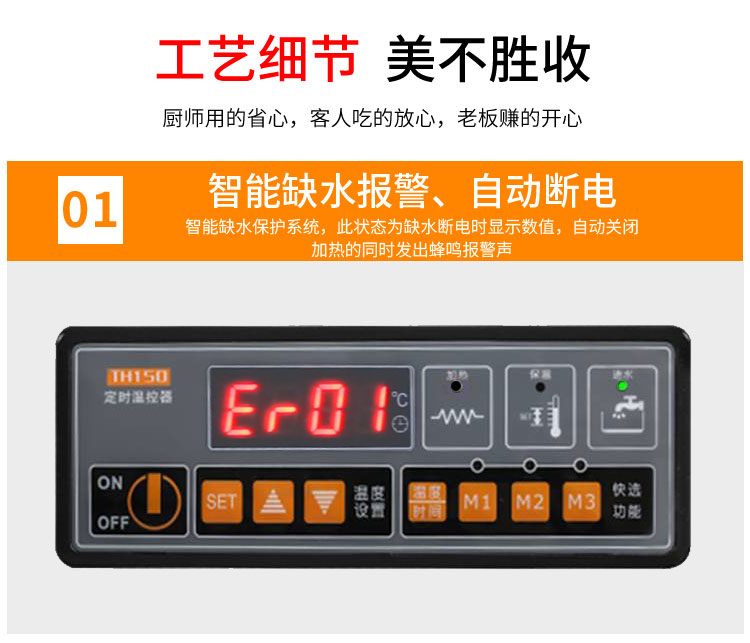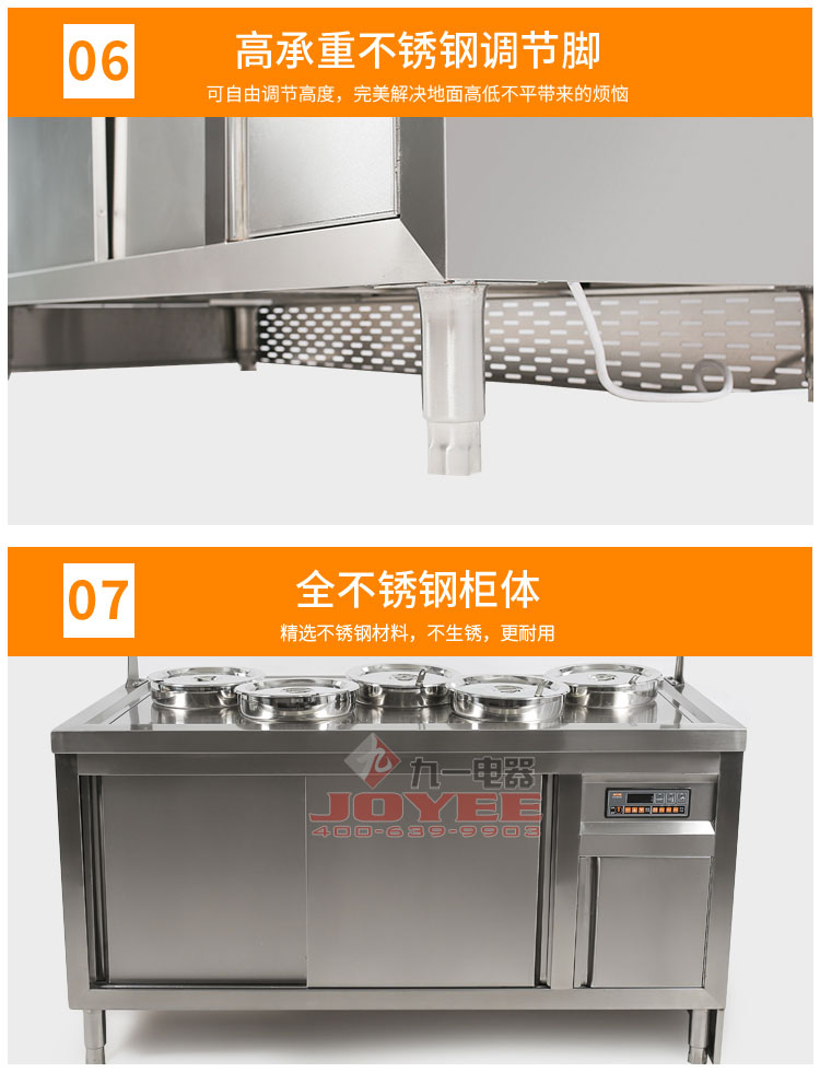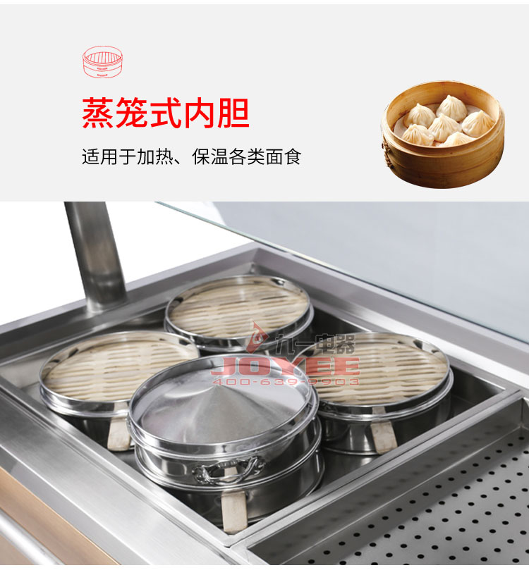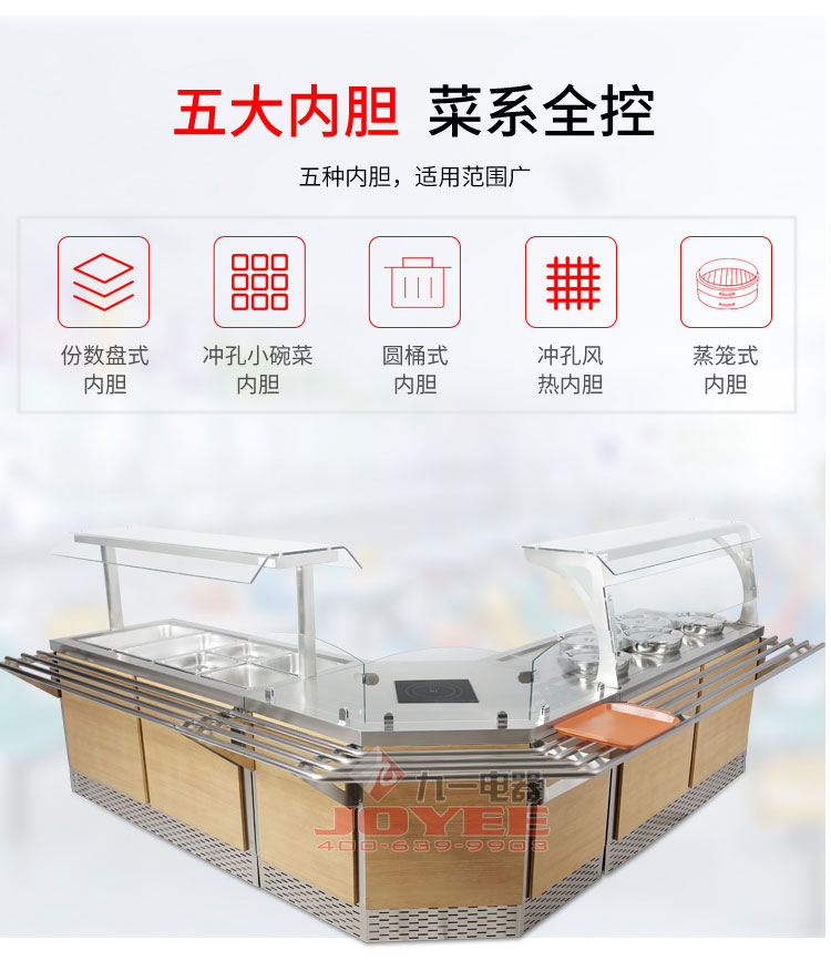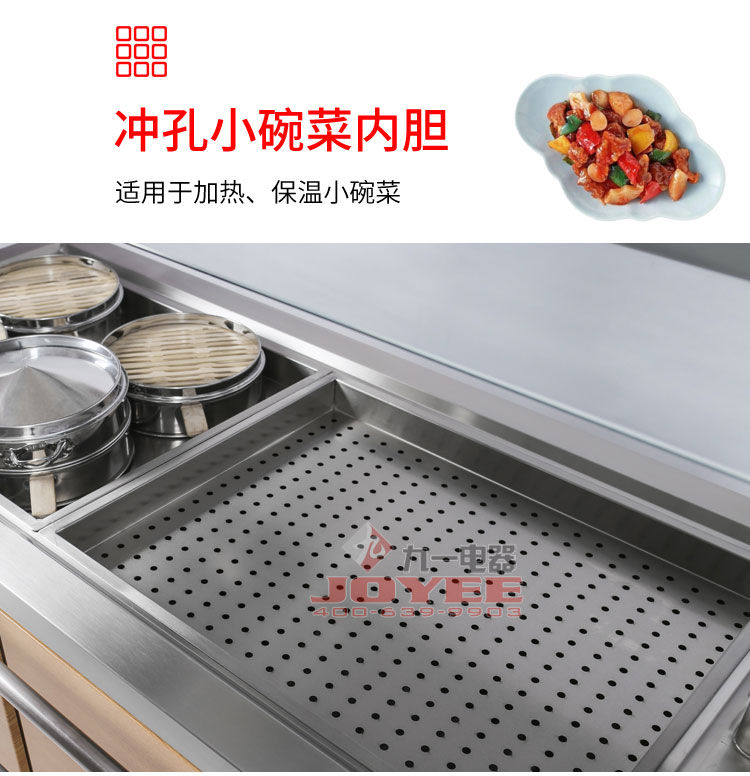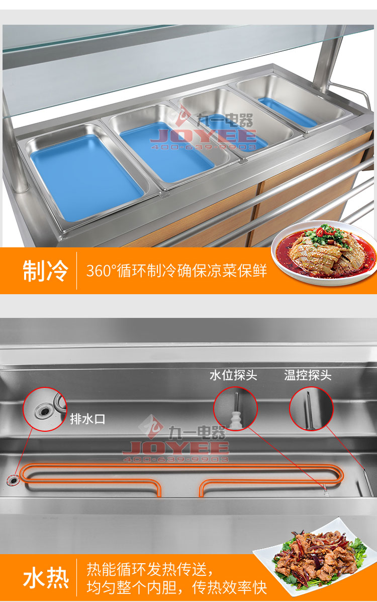 仿木紋裝飾板高端上檔次,前部圓管式平臺(tái)簡(jiǎn)潔大方,前開口式玻璃罩方便傳遞菜品,內(nèi)置LED射燈展示效果更佳,全304不銹鋼柜體,厚度1.2mm板材鍛造堅(jiān)固耐用!