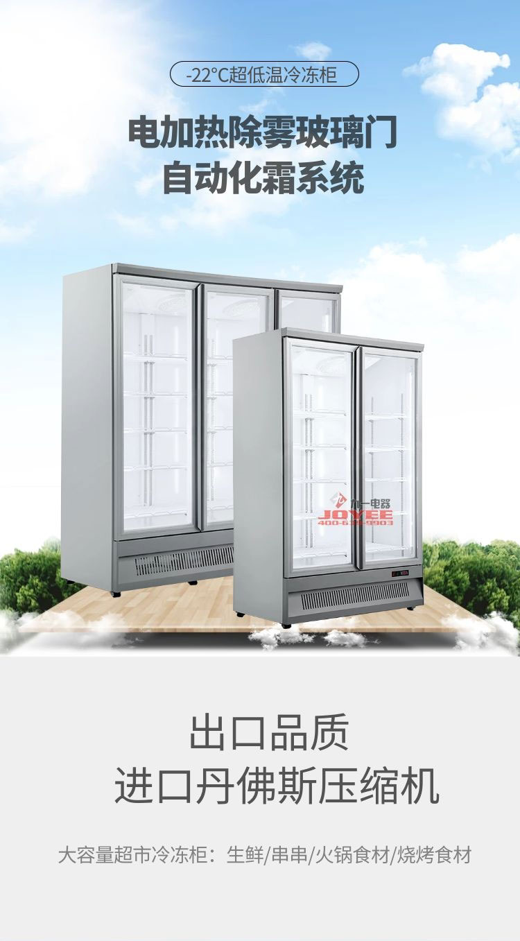 -18 ~ -22℃超低溫冷凍,采用進口丹佛斯壓縮機。搭載自動化霜、自動蒸發(fā)水系統(tǒng),無需人工接倒水。電加熱除霧玻璃門杜絕起霧,配合LED照明展示效果極佳,是冷凍食品型零售新業(yè)態(tài)。