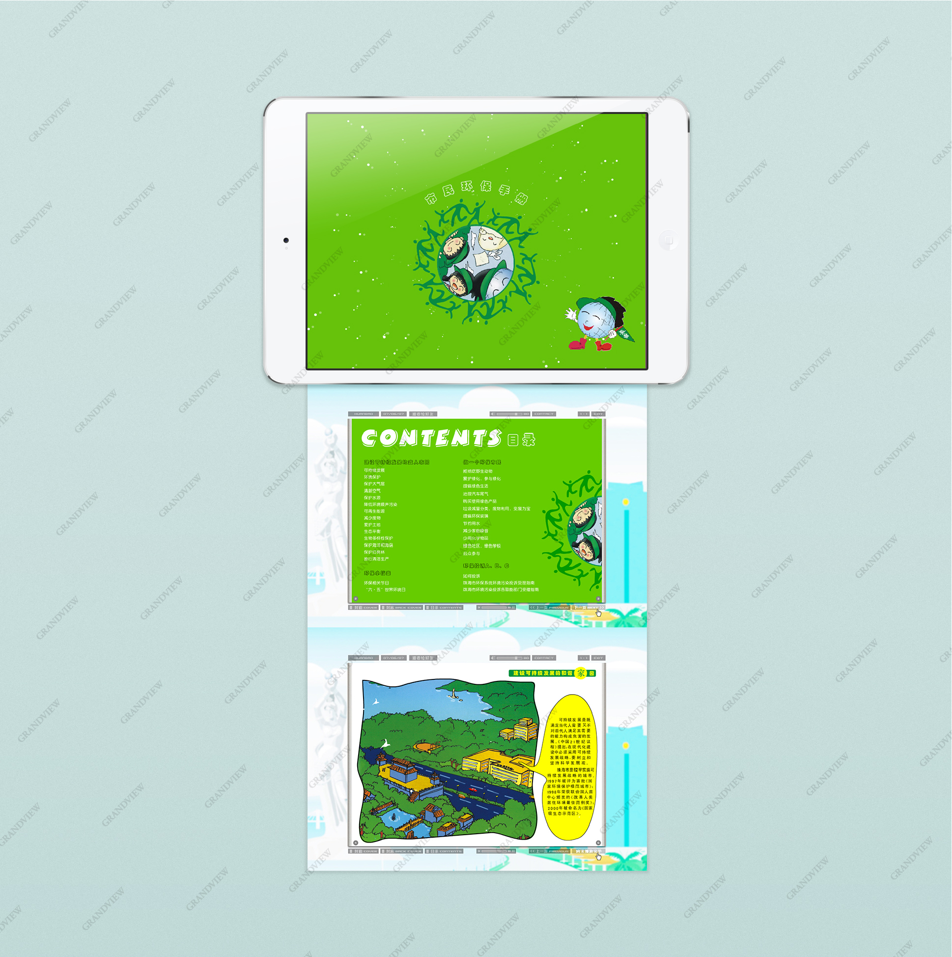 生機勃勃的綠色將宜居城市的環(huán)保主題直觀呈現(xiàn),珠海市環(huán)保局電子讀物《市民環(huán)保手冊》讓人眼前一亮、心生向往。