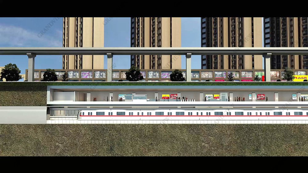 總體衛(wèi)星圖與三維動畫展示了整體12號線線路動向,三維動畫還以透視解構(gòu)等方式將本工程規(guī)模大、功法多、工期緊、風(fēng)險高、標(biāo)準(zhǔn)高的特點(diǎn)從正面?zhèn)让婕右哉故?,這同時也是廣角三維動畫制作、場景畫面拍攝、視頻剪輯制作的技術(shù)實(shí)力展示。